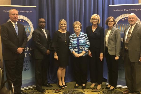 Director Vic Brown (pictured far left) and Board Chair Karl Colder (pictured second from left) honored Stephanie Gilmore, Thelma Hedrick, Bernetta Catching, Karen Manning and Kenny Burner (pictured left to right) at the Appalachia HIDTA Executive Board Meeting in May. Speaking to the Board, Director Brown emphasized the impact these five employees have had on the organization, "A successful organization is built brick by brick, but those bricks must be laid upon a solid foundation. These five employees have served as that solid foundation."